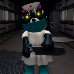 New Piggy Katie Skin - She is similar to her uninfected counterpart , but has a white dress, cyan blue leggings with a sky blue mask, along with a nurse hat and black glasses.